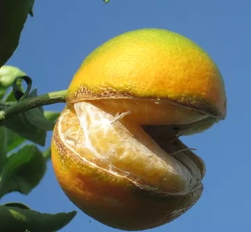在沃柑膨大轉(zhuǎn)色期,常因鈣硼營養(yǎng)不能轉(zhuǎn)移到果實(shí)中,導(dǎo)致果皮海綿層發(fā)育不良,易出現(xiàn)果實(shí)內(nèi)裂、龜裂。